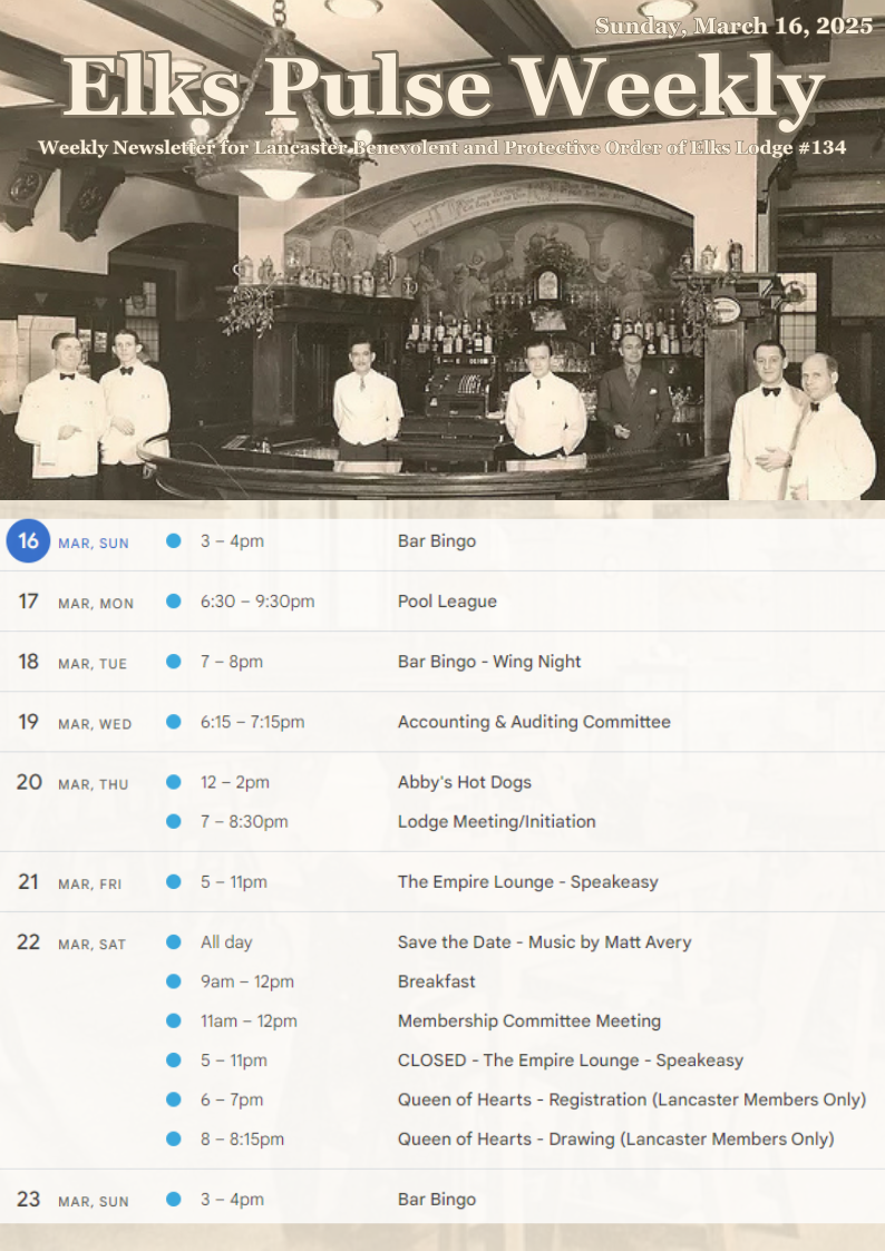 Should any of these circumstances arise and you no longer wish to be an Elk, you may “resign” by requesting an Absolute Dimit, in writing (see link below), in a timely manner prior to March 31st. If, as of April 1st you have not paid dues for 2025/26 you become a delinquent member and cannot request any Dimit until your dues are paid for that current lodge year.