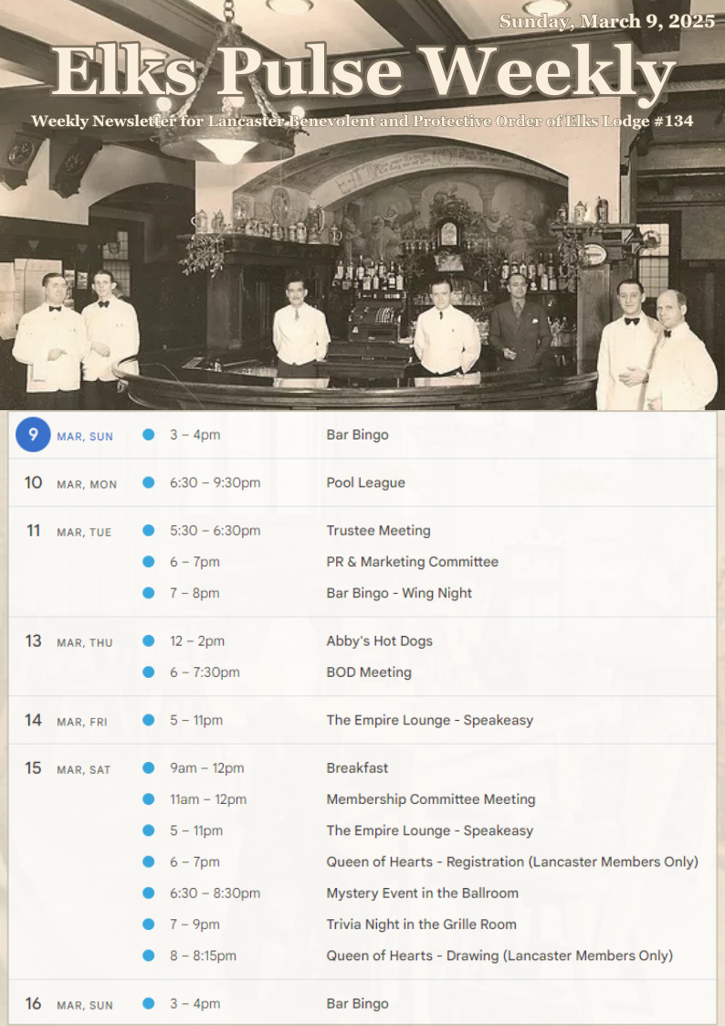 Should any of these circumstances arise and you no longer wish to be an Elk, you may “resign” by requesting an Absolute Dimit, in writing (see link below), in a timely manner prior to March 31st. If, as of April 1st you have not paid dues for 2025/26 you become a delinquent member and cannot request any Dimit until your dues are paid for that current lodge year.